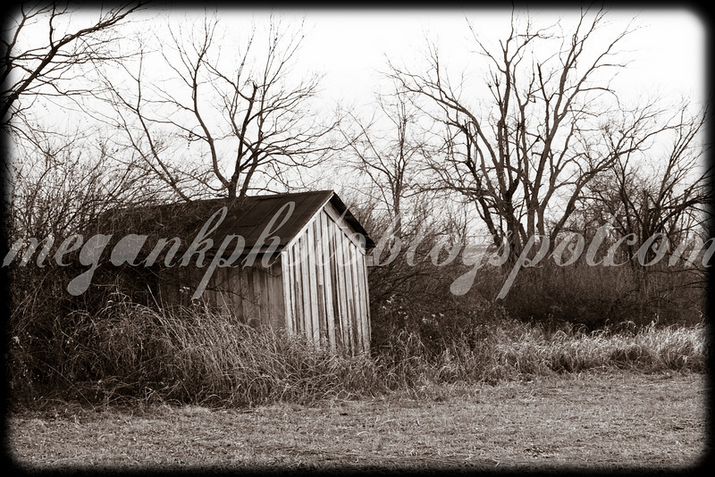 On the way home I realized I was yet to take a photo, and there wasn't much daylight left. On the interstate we passed a really pretty barn. I value my life too much to stop mid interstate, so we got off on the next exit. We were unable to get to that barn, but in the works I decided to settle for taking a photo of a field. However, when I got out of the vehicle, I found this poor little falling in barn/shack just waiting to have its picture taken!